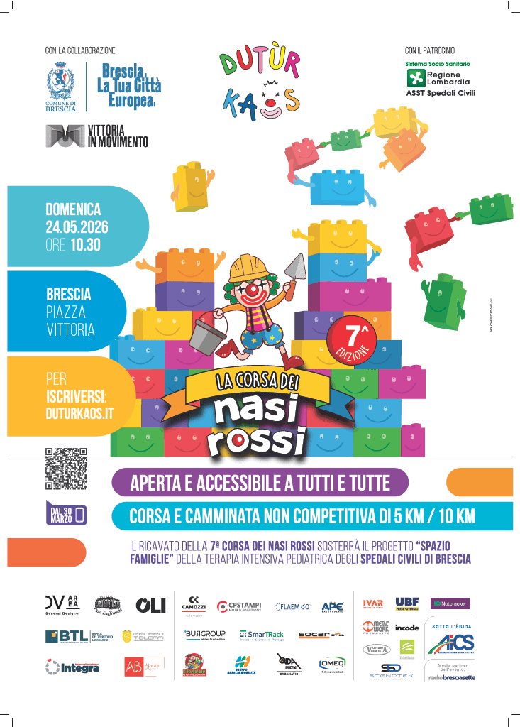 Per la settima edizione della Corsa dei Nasi Rossi, Dutur Kaos ha deciso di sostenere il progetto “Spazio Famiglie” della Terapia intensiva Pediatrica degli Spedali Civili di Brescia.